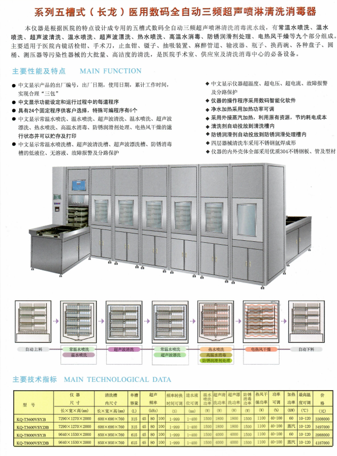 系列五槽式(长龙)医用数码自动三频超声喷淋清洗消毒器