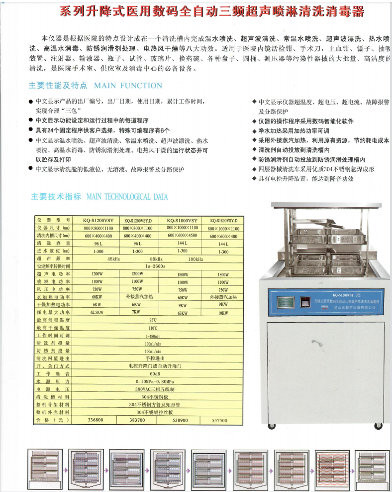 系列升降式医用数码全自动三频超声喷淋清洗消毒器